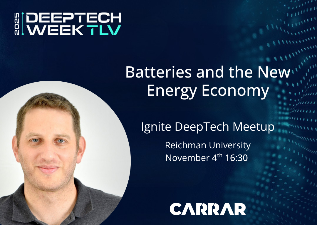 Join our CEO Eitam Friedman at the Startup Panel, "Batteries & The New Energy Economy", an Ignite DeepTech Event on November 4th, 16:30, during Deeptech Week TLV.